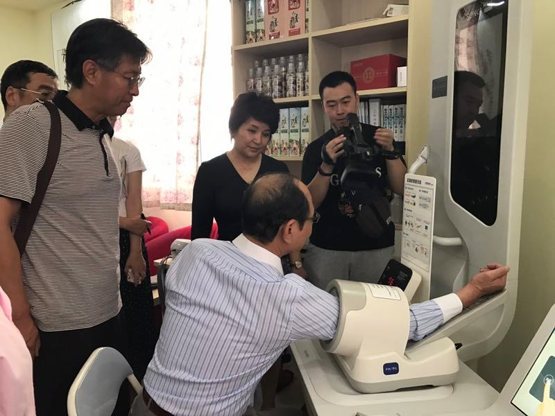 北京医养康董事长于立新向台湾客人详细介绍了该集团应用"互联网+"现代技术,通过商业模式创新,有效地对居民需求侧进行梳理,并与政府及市场的供给侧有机对接起来,更好地解决居民的医疗、养老、健康问题的经营理念和管理模式。