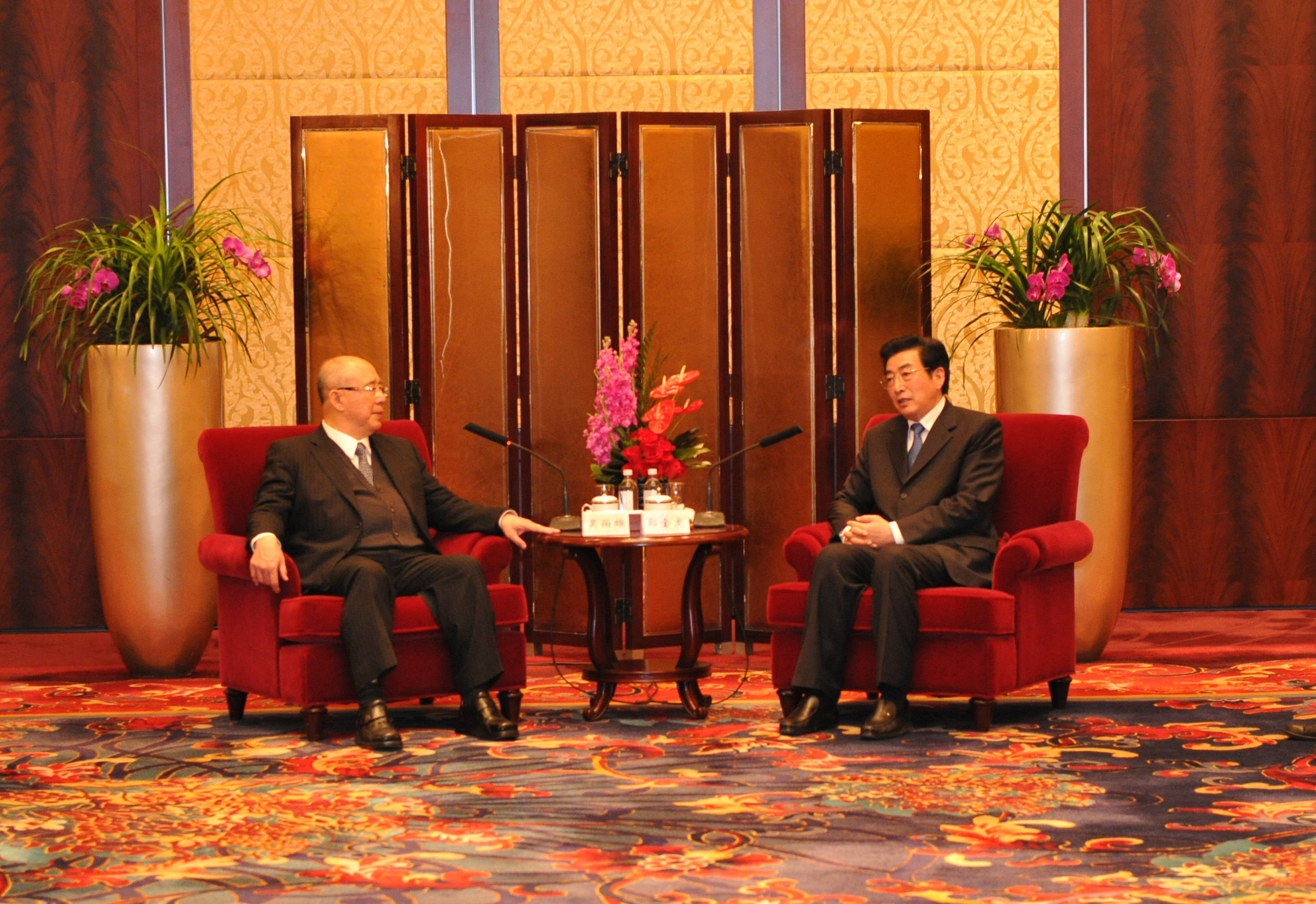 中共北京市委副书记、市长郭金龙会见中国国民党荣誉主席吴伯雄(丁磊 摄)