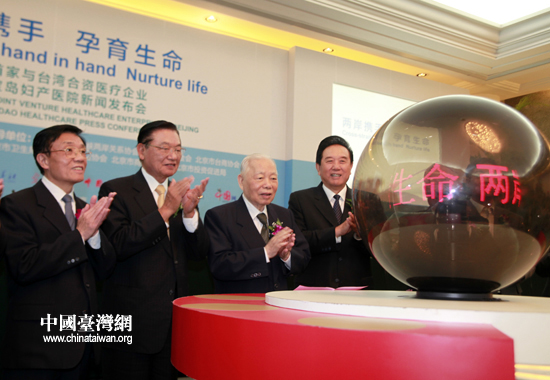 张克辉、陈云林、江丙坤与两岸嘉宾共同启动北京宝岛妇产医院项目(中国台湾网 田云鹏 摄)