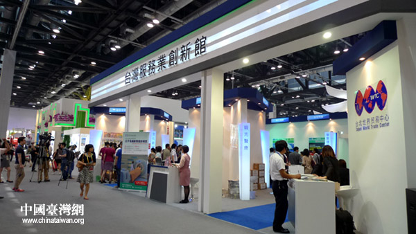 台北世贸中心在京交会上设立180平米“台湾服务业创新馆”,推介包括文创、医疗美容、管理顾问、信息服务、美食、会展在内的六项服务业项目。(中国台湾网 李徽 摄)
