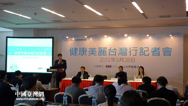 台北世贸中心28日在京交会上举行“健康美丽台湾行”记者会(中国台湾网 李徽 摄)