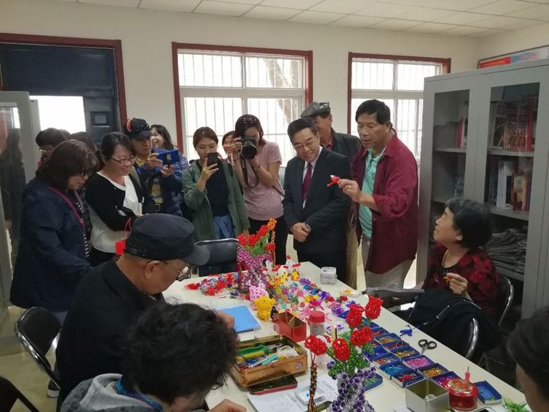 参访团首先参观了海淀街道的稻香园南里社区便民超市、社区菜店、社区居委会和服务站办公室,与社区居民近距离交流了手工编织,充分体验了社区居民的日常生活。参访团里很多人是第一次来到北京,更是第一次接触北京普通老百姓的日常,一进社区就兴奋地四处张望,整洁优美、秩序井然的小区,规范的社区办公环境,安详的老人和活泼的孩子,老年餐桌里种类丰富的平价早点,便民超市里新鲜的蔬菜水果……样样都让台湾朋友们倍感新鲜。