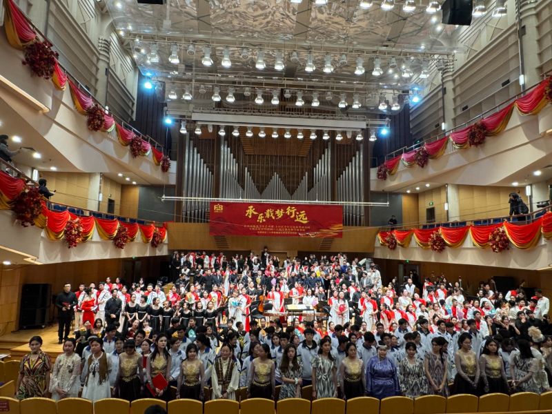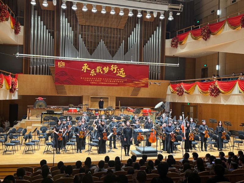 晚上在北京音乐厅,怀揣相同热爱的6所学校11个乐团400 余名师生携手登台,共同演绎了一场以“承乐·载梦·行远”为主题的专场音乐会,共谱两岸青少年艺术交流新篇。整场音乐会旋律悠扬、异彩纷呈,用一曲曲动人乐章演绎两岸情谊绵长。台湾青少年音乐教育参访团的登场为音乐会注入了别样的温情与力量,柴可夫斯基《第五交响曲》第四乐章以磅礴交响诠释生命张力,《龙腾贺岁》以喜庆旋律传递新春祥瑞,台湾青少年以精湛演奏赢得了现场阵阵掌声。随后“小星星”弦乐团与台湾青少年共同奏响经典曲目《良宵》,旋律交融间是两岸青少年对艺术的共同热爱,更是心与心的紧密相连。音乐会尾声,《友谊地久天长》奏响全场。小星星艺术团多支乐团(民族管弦乐团、弦乐团、交响管乐团、钢琴乐团等)、台湾青少年音乐教育参访团与北京市第十中学东校区合唱团携手演绎,民乐雅致、西乐磅礴与人声温暖交织相融,打破乐器与门类界限,勾勒出艺术无界、情谊相连的动人图景,为整场音乐会画上圆满句号。
