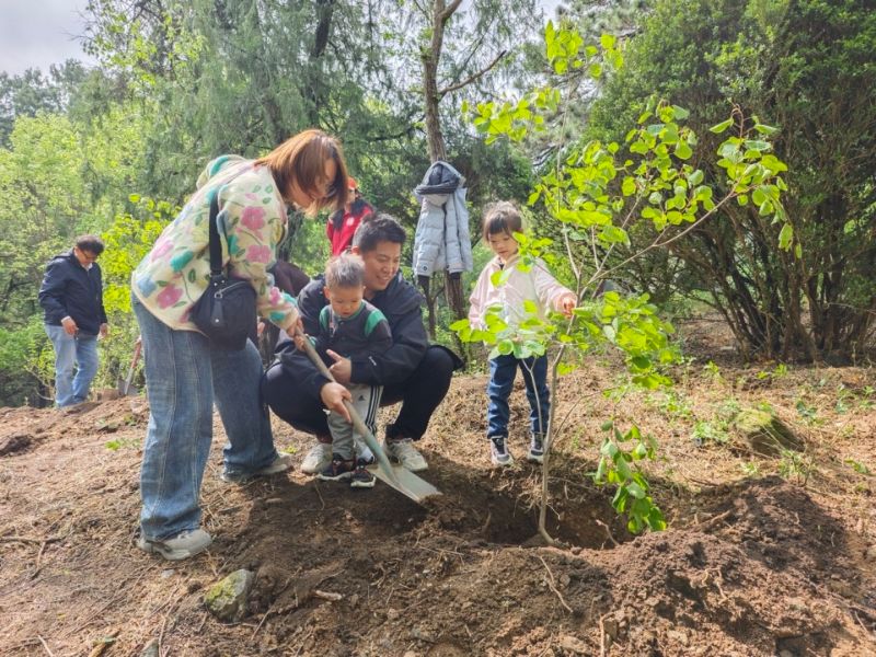 在植树现场,两岸同胞一起挥锹铲土、培土围堰、提水浇灌,大家以绿为媒,共同书写两岸亲情篇章。参加植树的台生说,首次参与海淀的植树活动,泥土的芬芳和大家的热情让我感受到家的温暖,未来将把这份体验带回台湾,与亲友分享两岸携手护绿的故事。两岸婚姻的四口之家共同为树苗培土浇水,全家感慨“这棵树就像我们的家庭,两岸的土壤滋养它成长,未来无论风雨,我们都会共同守护”。