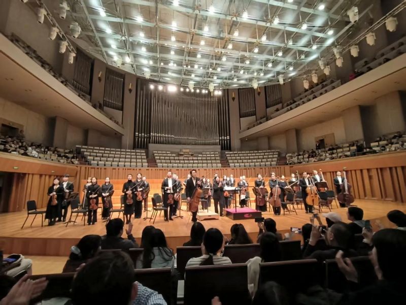 随后,参访团迈入音乐厅,欣赏由国际知名大提琴家秦立巍领衔、国家大剧院管弦乐团室内乐团呈现的专场音乐会,本场活动以“低声弦舞·艺脉相承”为主题,通过经典音乐对话,在弦音共舞中感悟音乐艺术的精粹,深化两岸青年对中华文化的认同。