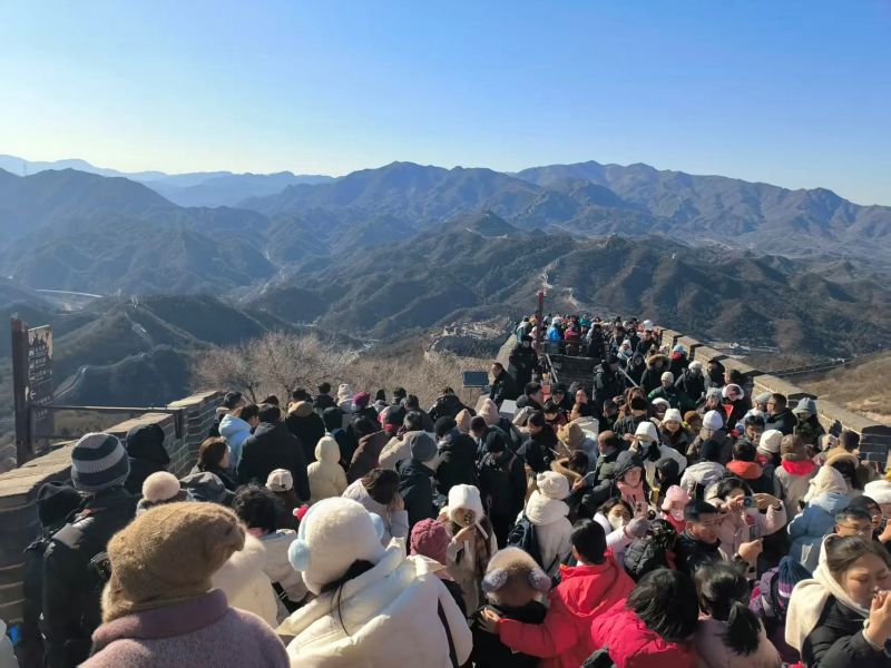 参访团登上八达岭长城,面对“北国风光,千里冰封”的冬日景象,体会“不到长城非好汉”的壮阔豪迈。